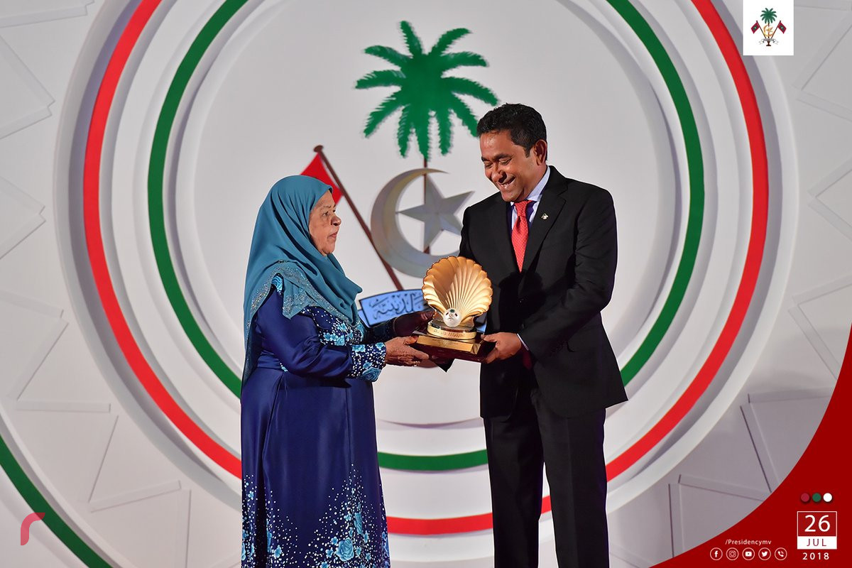 ބައިނަލްއަގްވާމީ މައުރަޒަކުން ނުވަތަ މުބާރާތަކުން ނުވަތަ އެ ނޫން ވެސް ބައިނަލްއަގްވާމީ މިން ކުރުމަކުން އެންމެ މަތީ ވަނަ ނުވަތަ ޝަރަފު ހޯދައިގެން ރައީސް ދެއްވާ އިނާމު ހާސިލުކުރި ތިން މީހަކަށް އިނާމު ދެއްވިއިރު، ކީރިތި ޤުރްއާން ހިތުދަސް ކުރި ހަތް ހާފިޒަކަށާއި ސާނަވީ އިމްތިހާނާއި މިދިޔަ އަހަރާއި މި އަހަރުގެ މަތީ ސާނަވީ އިމްތިހާނުން މުޅި ދުނިޔެ އިން އެކި މާއްދާތަކުން އެއްވަނަ ހޯދި ދަރިވަރުންނަށް ވެސް ރައީސް ޔާމީން މެޑަލް ދެއްވި އެވެ.