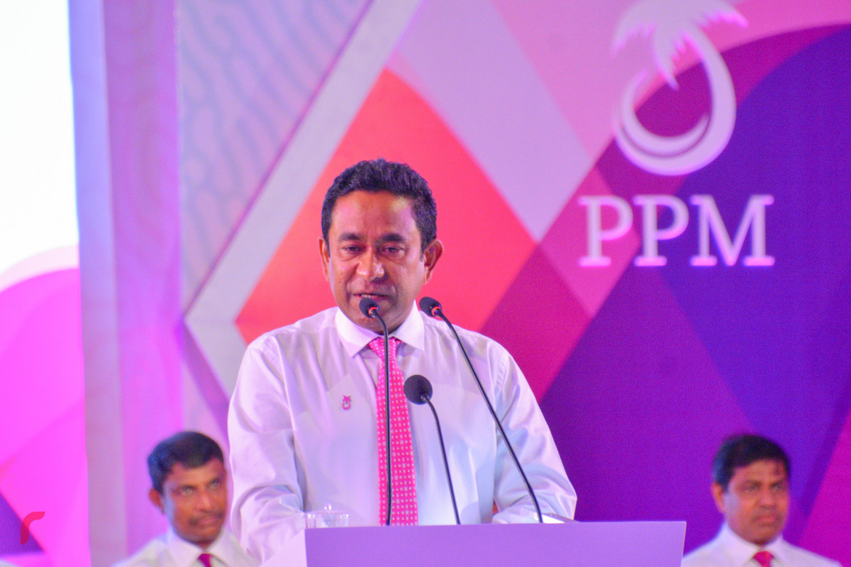 ޕީޕީއެމް އުފެއްދެވި ރައީސް މައުމޫންގެ އަތްޕުޅުން ކޯޓު މެދުވެރިކޮށް ޕީޕީއެމްގެ ކޮންޓްރޯލް ނަންގަވާފައިވާ ރައީސް ޔާމީން މިހެން ވިދާޅުވީ ޕީޕީއެމްގެ ރިޔާސީ ޓިކެޓް އެރުވުމަށް އާދީއްތަ ދުވަހުގެރޭ ދަރުބާރުގޭގައި ބޭއްވި ރަސްމިއްޔާތުގައި ވާހަކަފުޅު ދައްކަވަމުންނެވެ.