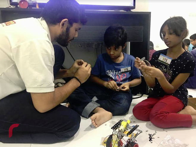 ރޮބޮޓިކްސް ބޫޓް ކޭމްޕްގައި ކުއްޖަކު ރޮބަޓްއެއް ރާވަން ދަސްކުރަނީ
