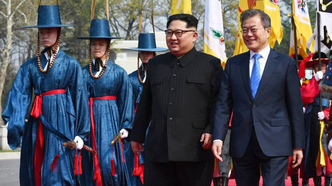 ކޮރެއަން ޕެނިންސިއުލާއަކީ ނިއުކްލިއަރ ހަތިޔާރު ނެތް ތަނަކަށް ހެދުމަށް މަގުފަހިކުރުމަށް ކިމް އެއްބަސްވެ ވަޑައިގެންނެވީ ދެކުނު ކޮރެއާގެ ރައީސް މޫން ޖެއި އިން އާއެކު ބޭއްވެވި ބައްދަލުވުމުގައެވެ.