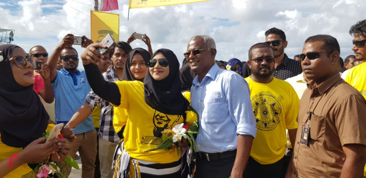 ވެރިޔާ އަށް ދެންނެވީމެވެ. ޓީވީން ތިޔަ ފެނިވަޑައިގަންނަވާ މަންޒަރަކީ، ހަގީގަތުގައި ކަން އޮތް ގޮތެއް ނޫނެވެ. އިބޫ އަކަށް ތާއީދެއް ނެތެވެ. ރީނދޫ ޓީޝާޓުގައިވެސް ނުކުމެ ގިނައިން ރަށްރަށުގައި ތިބެނީ ހަގީގަތުގައި ރައީސް ޔާމީނަށް ވޯޓު ލާ މީހުންނެވެ. އަޅުގަނޑުމެންގެ ރަށުގައިވެސް އެކަންވީ އެހެންނެވެ. އިބޫ ވަޑައިގެންނެވި ދުވަހު، އެމްޑީޕީ މީހުން ބުނެ އާދޭސް ކޮށްގެން ޓީޝާޓް ހިލޭ ދީގެން ގިނައިން ނުކުމެ ތިބީ ޔާމީނަށް ތާއީދު ކުރާ މީހުންނެވެ. އެމްޑީޕީ އަށް ތާއީދު ކުރަން ރަށުގައި ތިބ، ހައްޔަރުކޮށްގެން އެ ގެންގުޅޭ މެމްބަރުގެ އާއިލާ އާއި އަދި އިތުރު ދެ ބައެކޭ ވެރިޔާ އަށް ދެންނެވީމެވެ.