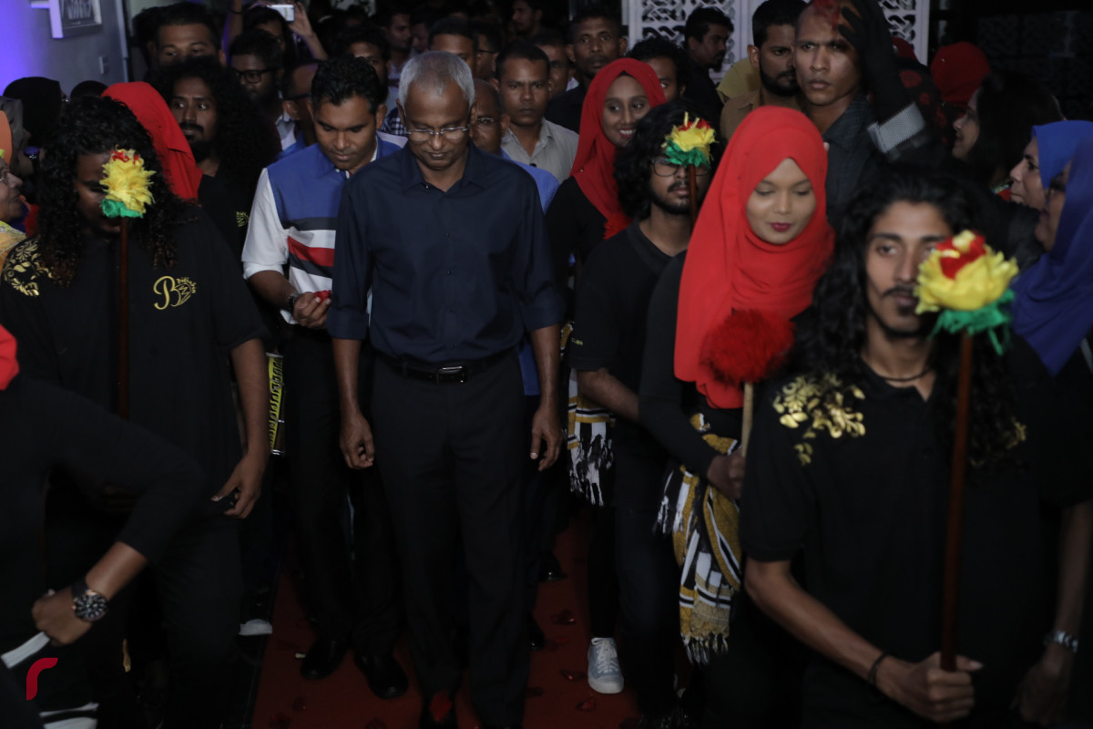 ބުރާސްފަތި ދުވަހުގެ ރޭ 9 ޖެހިއިރު ފެށުނު އެހަރަކާތުގައި 11:30 ވަންދެން އިންތިޚާބީ ރައީސް އިބްރާހީމް މުހައްމަދު ސޯލިހާއި އިންތިޚާބީ ނައިބު ރައީސް ފައިސަލް ނަސީމް ގެންދެވީ ހަފްލާއަށް ހާޒިރުވި ފަރާތްތަކާއެކު ފޮޓޯ ނަންގަވަމުންނެވެ.