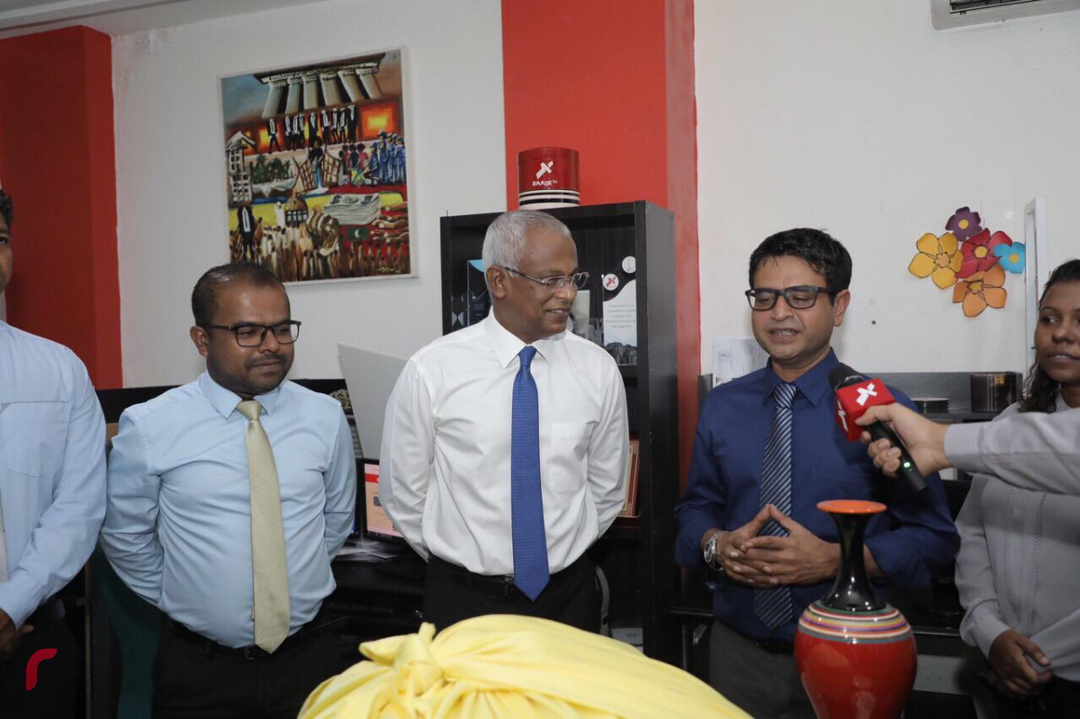 ރައީސް ކަމަށް އިންތިހާބުވުމަށް ފަހު އިބްރާހިމް މުހައްމަދު ސޯލިހު އެންމެ ފުރަތަމަ ޒިޔާރަތްކުރެއްވި ސްޓޭޝަނަށް ރާއްޖެ ޓީވީ ވެފައި ވާއިރު، އެބޭފުޅާ ގެންދަވަނީ ރާއްޖެ ޓީވީގެ ސްޓާފުންނާ ބައްދަލު ކުރައްވަމުންނެވެ.