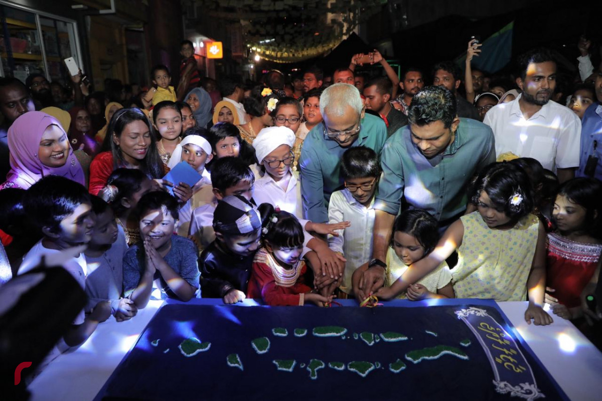 އިންތިޚާބުގައި ލިބުނު ބޮޑު ކާމިޔާބީ ރަމްޒުކޮށްދޭ ބޮޑު ކޭކެއްވެސް ކުޑަކުދިންނާއެކު މި ހަފްލާގައި އިންތިޚާބީ ރައީސް ސޯލިހް އާއި އިންތިޚާބީ ނައިބު ރައީސް ފައިސަލް ވަނީ ފަޅައިފައެވެ.