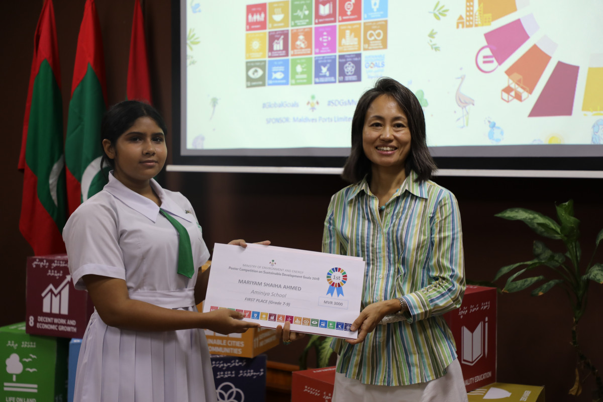 މި މުބާރާތުން ވަނަތަކަށް ހޮވުނު ދަރިވަރުންނަށް އިނާމް ޙަވާލްކޮށްދެއްވީ މިނިސްޓްރީ އޮފް އެންވަޔަރަންމަންޓް އެންޑް އެނަރޖީގެ މިނިސްޓަރ އޮފް ސްޓޭޓް ޢަބްދުﷲ މަޖީދާއި، މިނިސްޓްރީ އޮފް އެޑިއުކޭޝަންގެ މިނިސްޓަރ އޮފް ސްޓޭޓް އަލްފާޟިލް އަޙުމަދު ޝަފީޢު އާއި މިނިސްޓްރީ އޮފް އެންވަޔަރަންމަންޓް އެންޑް އެނަރޖީގެ ޑިރެކްޓަރ ޖެނެރަލް އަލްފާޟިލާ އައިޝަތު ސާދެވެ. ޔުނައިޓެޑް ނޭޝަންސް (ޔޫ.އެން) ގެ ރެޒިޑެންޓް ކޯޑިނޭޓަރ އަދި ޔޫ.އެން.ޑީ.ޕީ ގެ ރެޒިޑެންޓް ރެޕްރެޒެންޓެޓިވް މިސް ޝޯކޯ ނޯޑާއެވެ.