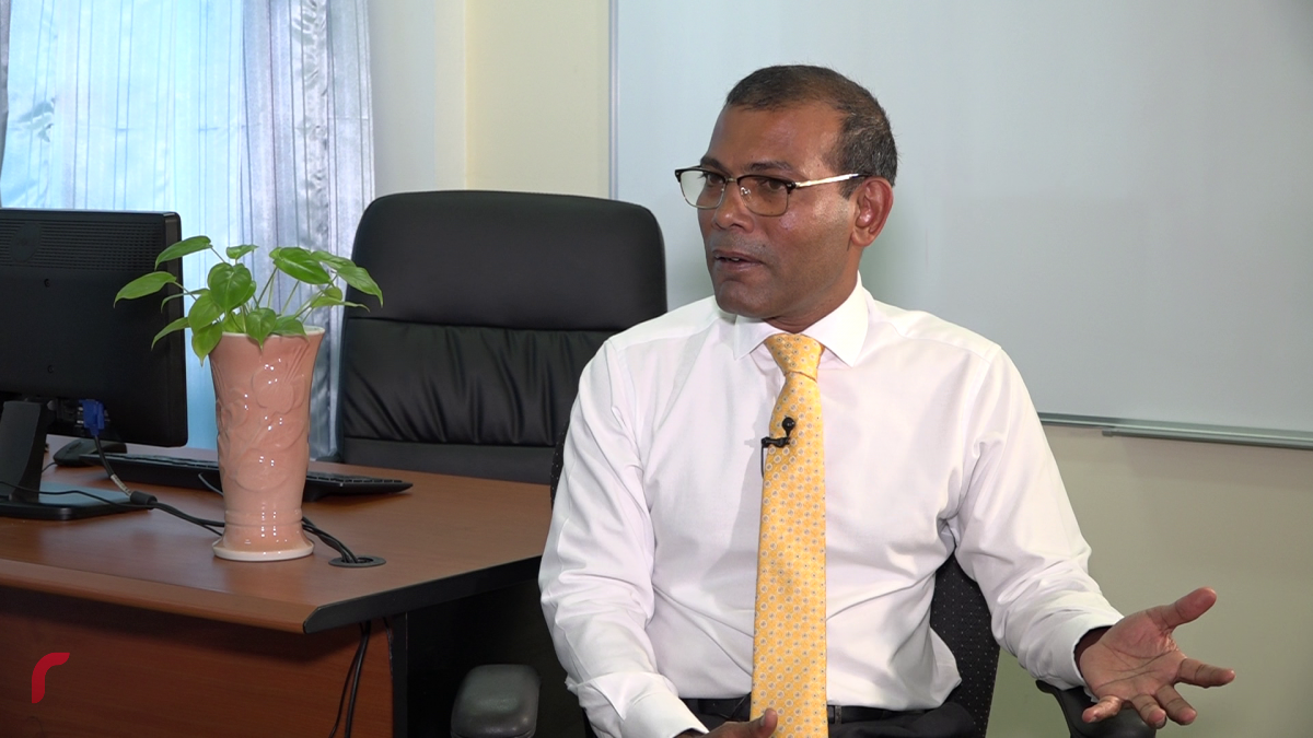 "އަޅުގަނޑަށް ވެސް އިނގޭ ތިބޭފުޅުން [ރާއްޖެޓީވީ] ބޭނުންވެވަޑައިގަންނަވަނީ ސެންސޭޝަންކަން. ރާއްޖެޓީވީގެ ބޭނުމަކީ ހިޔާލުތަފާތު ކުރުމާއި ނަފްރަތު އުފެއްދުމާއި ފޯލްޓް ލައިނެއް ގެނައުން ކަން. އެހެން ނަމަވެސް ގަބޫލުކުރައްވާ، ދެނެވަޑައިގަންނަވާ އަޅުގަނޑުމެންގެ އަތް ވެސް ނުގުޑާނެ. އަޅުގަނޑާއި އިބްރާހިމް މުހައްމަދު ސޯލިހާއި ތިބޭނީ މިހެން [އަތުގެ އިޝާރާތުން ޝަހާދަތް އިނގިއްޔާއެކު ދެ އިނގިލި ދައްކާލަދެއްވައި، ދެބޭފުޅުން ތިއްބަވާނީ އެކުގައި ކަމަށް އިޝާރާތް ކުރެއްވި]،" ރާއްޖެޓީވީއަށް ފުރަތަމަ ފަހަރަށް ފާޑުވިދާޅުވެ ވާހަކަފުޅު ދައްކަވަމުން ރައީސް ނަޝީދު ވިދާޅުވިއެވެ.