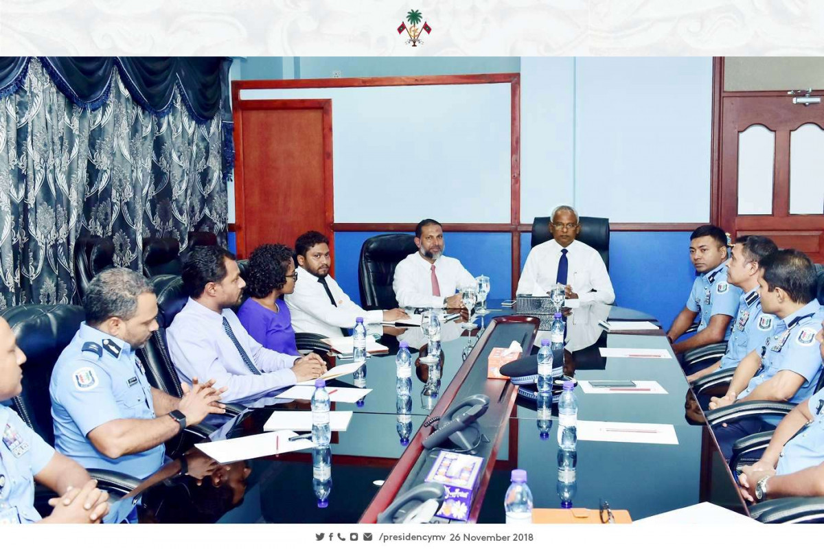 މޯލްޑިސްވް ޕޮލިސް ސަރވިސްގެ ހެޑް ކުއާޓާޒްގައި އޮތް މި ބައްދަލުކުރެއްވުމުގައި، ފުލުހުންގެ މުއައްސަސާ އިތުރަށް ހަރުދަނާ ކުރުމަށާއި އިޞްލާހުކުރުމަށް ކުރަންޖެހޭ ކަންކަމާ ބެހޭގޮތުން، ރައީސުލްޖުމްހޫރިއްޔާ ފުލުހުންގެ މުއައްސަސާގެ އިސްވެރިންނާ މަޝްވަރާކުރެއްވިއެވެ.
