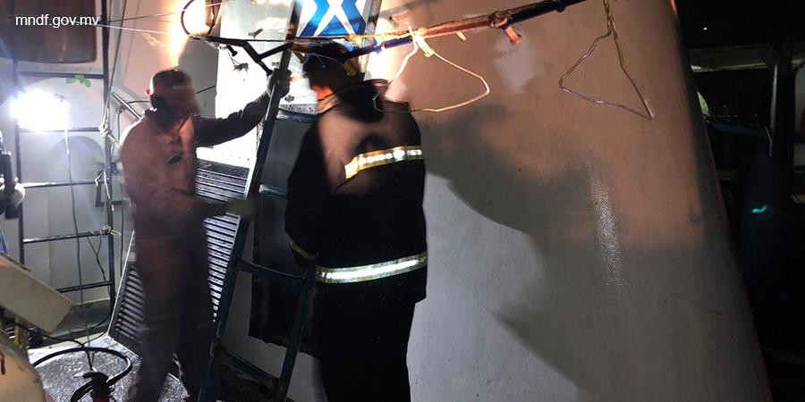 ޓަގް ބޯޓުގައި ރޯވި އަލިފާން ނިއްވާލުމުގެ މަސައްކަތް ކުރަނީ