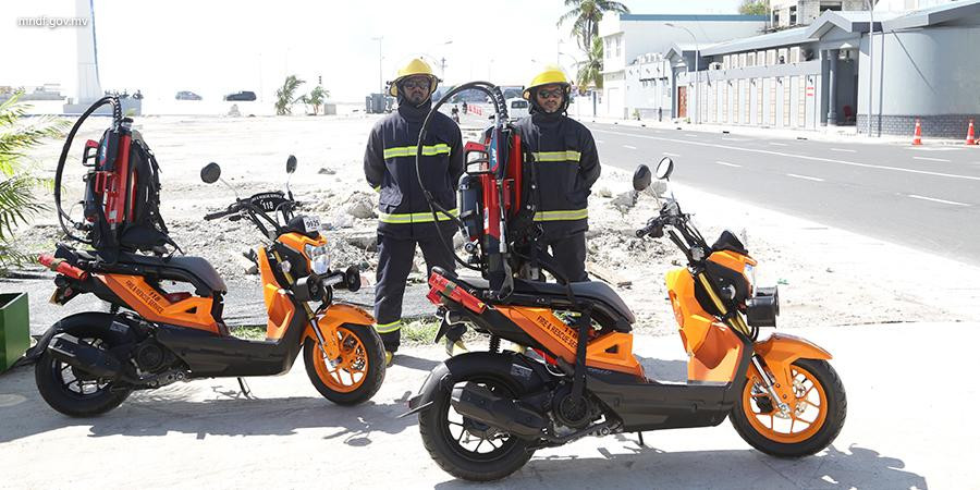 އެމްއެންޑީއެފް ފަޔަރ އެންޑް ރެސްކިއު ސަރވިސްގެ ޚިދުމަތަށް އަލަށް ތަޢާރަފް ކުރި އަލިފާން ނިވާ ދެ ސައިކަލް ދައްކާލަނީ | އެމްއެންޑީއެފް