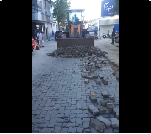 މާލޭގައި އެންމެ ބޮޑަށް ހަލާކުވެފައިވާ އެއް މަގު ކަމަށްވާ ކަނބާއައިސާރަނި ހިގުން ހެދުމުގެ މަސައްކަތް މާލޭ ސިޓީ ކައުންސިލުން ފަށައިފިއެވެ.