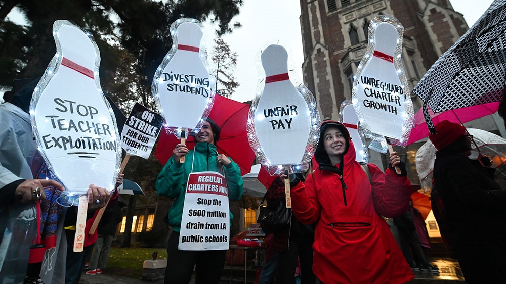 ލޮސް އެންޖެލިސްގެ ސްކޫލްތަކުގެ 30،000 އަށް ވުރެ ގިނަ ޓީޗަރުން މުސާރަ ބޮޑުކޮށްދިނުމަށް އެދި މަސައްކަތް ހުއްޓާލުމަށް ފަހު މުޒާހަރާކޮށްފިއެވެ.