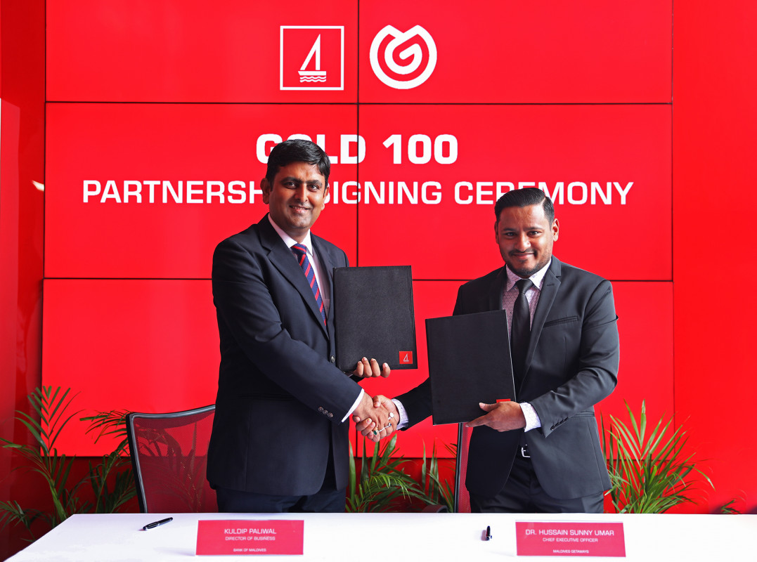 ރާއްޖޭގެ ކުރިއަރާފައިވާ ވިޔަފާރި ކުންފުނިތައް ފާހަގަކޮށް ދެވޭ "ގޯލްޑް 100" ގެ ޕްލެޓިނަމް ޕާރޓްނަރުގެ ގޮތުގައި ބޭންކް އޮފް މޯލްޑިވްސް ހަމަޖައްސައިފިއެވެ.