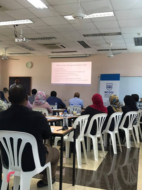 ރާއްޖޭގައި ފުޅާ ދާއިރާއެއްގައި ކޯޕަރޭޓް ގަވަރނަންސްގެ ފަންނީ ތަޢުލީމު ފޯރުކޮށްދޭ "މޯލްޑިވްސް ކެޕޭސިޓީ ޑިވެލޮޕްމަންޓް އެންޑް ގަވަރނަންސް އިންސްޓިޓިއުޓް އިން "ކޯޕަރޭޓް ގަވަރނަންސް ފޯރ ޑައިރެކްޓަރސް" ޕްރޮގްރާމްގެ ނަމުގައި ތަމްރީން ޕްރޮގްރާމެއް އައްޑޫ ސިޓީގެ އެމްއެންޔޫ ކެމްޕަސްގައި ބާއްވައިފިއެވެ.