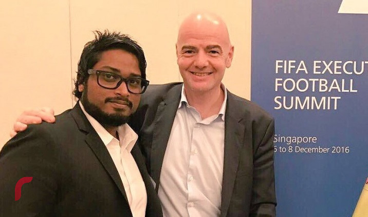 ފީފާގެ ރައީސް އިންފަންޓީނޯ (ކ) އަދި އެފްއޭއެމްގެ ރައީސް ބައްސާމް އަދީލް ޖަލީލް (ވ)