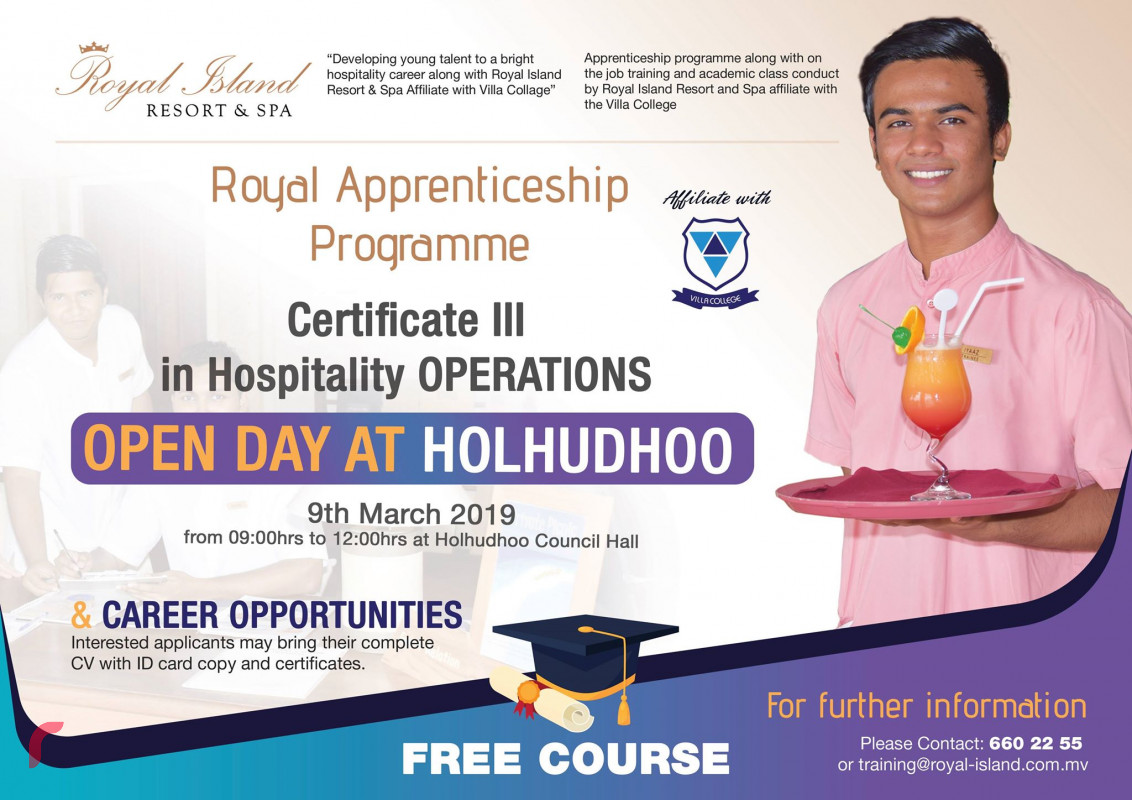 ރޯޔަލް އެޕްރެންޓިސްޝިޕް ކުރިއަށް ގެންދާތާ ވަނީ ދެއަހަރުވެފައި: ފޮޓޯ: ރޯޔަލް އައިލެންޑް ރިސޯޓު