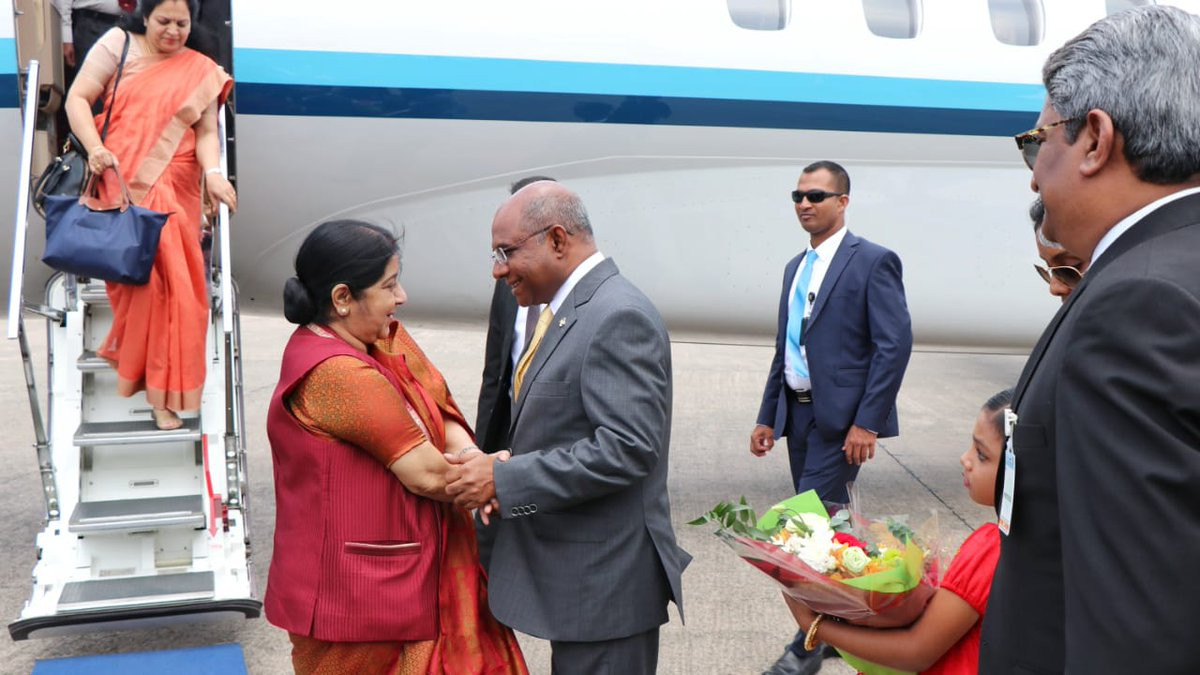 އާދީއްތަ ދުވަހު ސުޝްމާ ރާއްޖެ ވަޑައިގެންނެވުމުން އެކަމަނާ އަށް ފޮރިން މިނިސްޓަރ މަރުހަބާ ދަންނަވަނީ