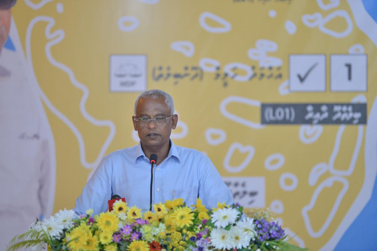 "މިއަދު އަޅުގަނޑުމެން އަލަަށް އެ ބިޑްތައް ހުޅުވާލީމާ އެއަށް އަންނަ އަގުތަކުން އަޅުގަނޑުމެންނަށް އެބަ އެނގޭ. އޭރު 70 މިލިއަން ރުފިޔާ އަށް އެވޯޑް ކޮށްފައި ހުރި ޕްރޮޖެކްޓެއް މިއަދު އިއުލާން ކުރީމާ އަގު ތިރިވެގެން ހިނގައްޖެ 27 މިލިއަން ރުފިޔާ 30 މިލިއަން ރުފިޔާއަށް. އެހެންވީމާ ކުރީގެ ސަރުކާރުން 70 މިލިއަން ރުފިޔާ ޚަރަދު ކޮށްގެން އަޅާފައި އޮތް ފެނާއި ނަރުދަމާގެ ނިޒާމަކަށް މިއަދު އަޅުގަނޑުމެން މި ނިންމަނީ 27 މިލިއަން، 30 މިލިއަން ރުފިޔާއަށް،" ރައީސް ސޯލިހު ވިދާޅުވިއެވެ.