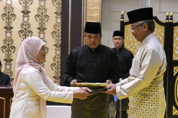 މެލޭޝިއާގެ ފުރަތަމަ އަންހެން އުއްތަމަ ފަނޑިޔާރުގެ މަގާމަށް އައްޔަން ކުރައްވާފައިވާ މައިމުން ތުއާން މަތުއަށް ރަސްގެފާނު އަލް-ސުލްތާން އަބްދުﷲ ރިއާޔަތުއްދީން އަލް-މުސްތަފާ ބިއްލާހް ޝާޙް މަގާމުގެ ފަތްކޮޅު ހޯމަ ދުވަހު ރަސްމީކޮށް އަރުވައިފިއެވެ.