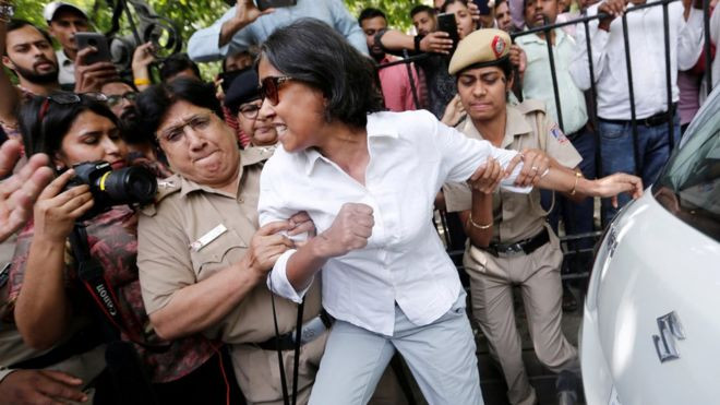 އިންޑިއާގެ އެންމެ އިސް ފަނޑިޔާރު, ރަންޖަން ގޯގޮއިގެ މައްޗަށް އެ ކޯޓުގެ ކުރީގެ މުވައްޒަފަކު ކުރި ޖިންސީ ގޯނާގެ ތުހުމަތުތަކުން އެމަނިކުފާނު ސަލާމަތްވެ ވަޑައިގަތުމުން އެކަމާ ދެކޮޅަށް އެގައުމުގެ ސުޕްރީމް ކޯޓުގެ ދޮރުމަތީގައި މުޒާހަރާކުރި މީހުންގެ ތެރެއިން 50 އަންހެނަކު އެ ގައުމުގެ ފުލުހުން ހައްޔަރު ކޮށްފިއެވެ.