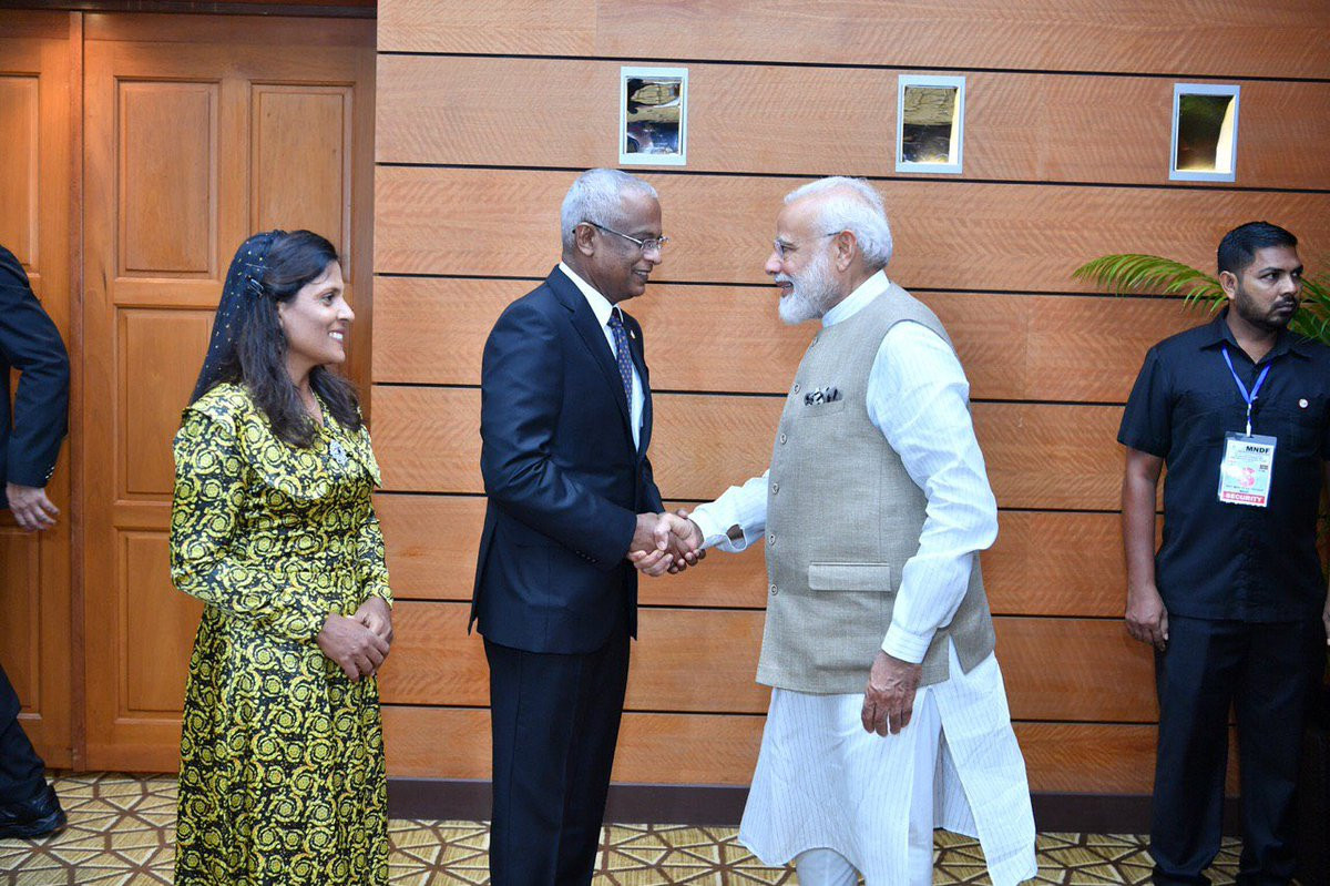 ެަރައީސް ސޯލިހު އާއި ބޮޑުވަޒީރު މޯދީ ސަލާމް ކުރައްވަނީ