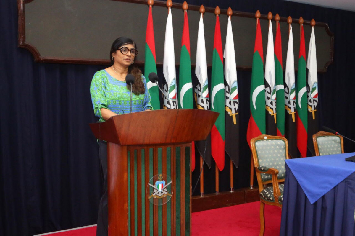 Also at the ceremony, Defence Chief Shamaal higlighted the importance of having a defence doctrine in order to provide professional services that citizens approve. He also thanked President Ibrahim Mohamed Solih on behalf of all officers for his work to develop the Maldives military.
