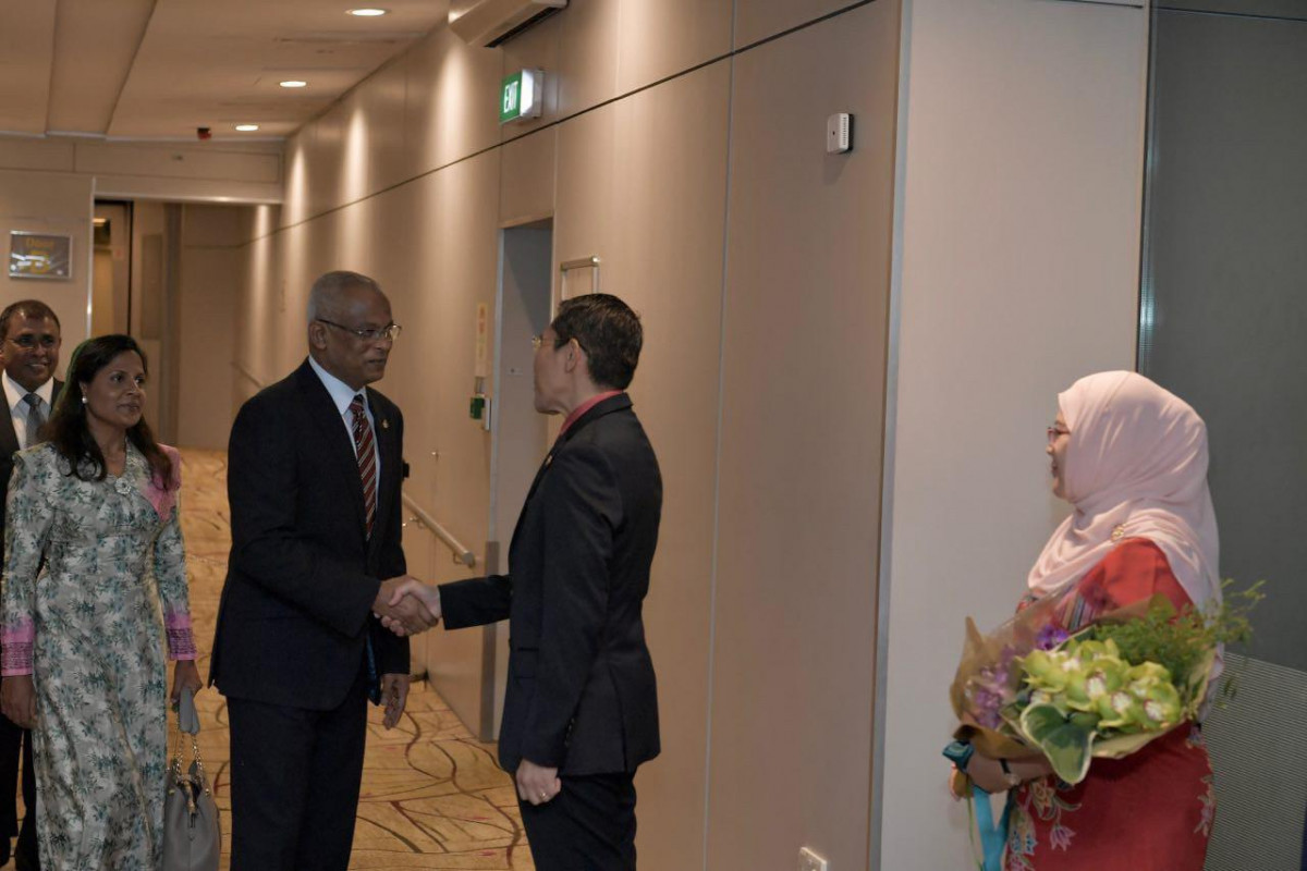 President Ibrahim Mohamed Solih and First Lady Fazna Ahmed were received by Singapore’s Senior Minister of State for Defense Maliki Osman