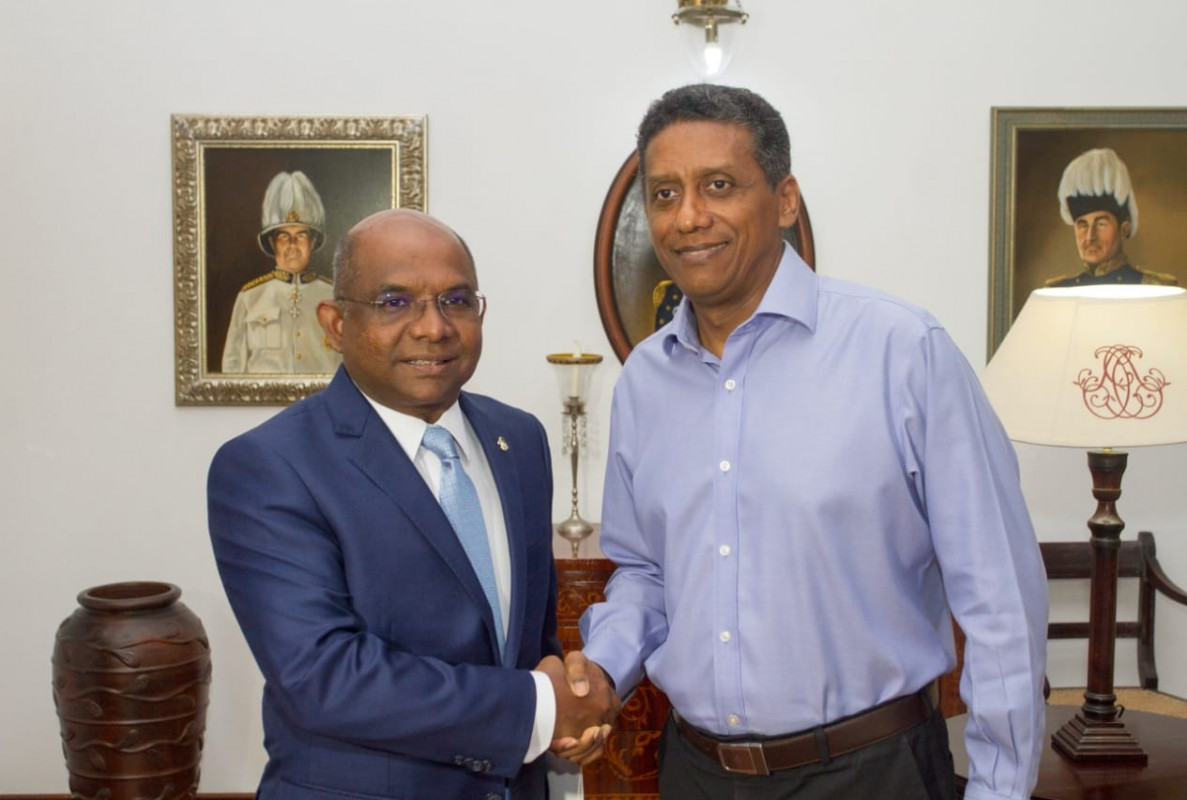 ސީޝެލްސްއަށް ކުރައްވާ ރަސްމީ ދަތުރުފުޅުގައި މިނިސްޓަރ ޝާހިދު ވަނީ ސީޝެލްސްގެ ރައީސް ޑެނީ ފޯރ އާއި ބައްދަލު ކުރައްވާފަ