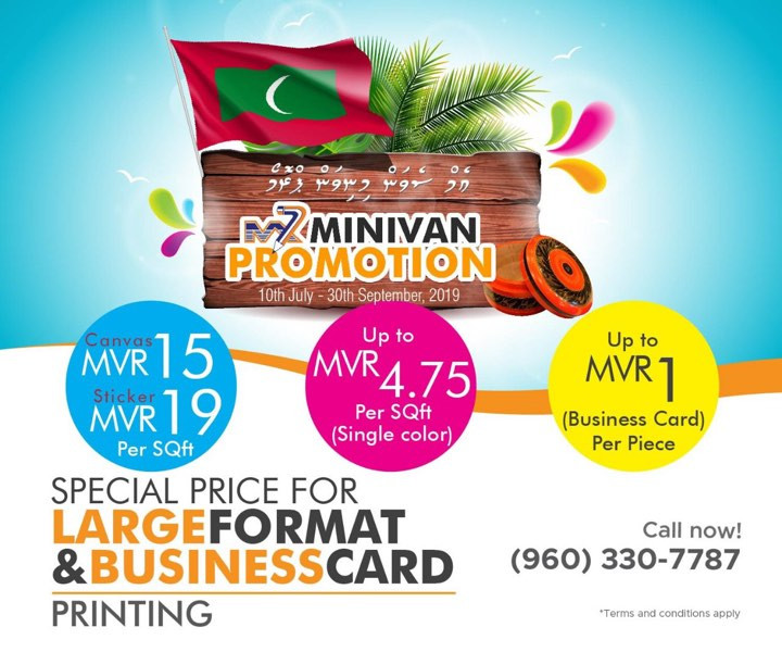 އެންމެ ޒަމާނީ ވަސީލަތްތަކާއި އެކު ޕްރިންޓް ކުރުމުގެ ޚިދުމަތް ދެމުން އަންނަ އެމް 7 ޕްރިންޓުން މިނިވަން ދުވަހުގެ މުނާސަބަތުގައި" އެމްސެވަން މިނިވަން ޕްރޮމޯ 2019" ގެ ނަމުގައި ޚާއްސަ ޕްރޮމޯޝަނެއް ފަށައިފިއެވެ.