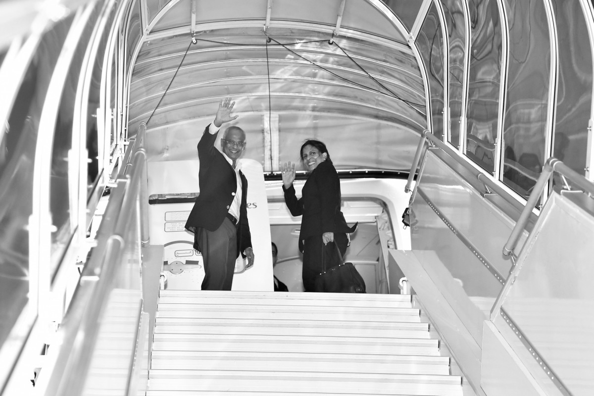 މޮރިޝަސް ސަރުކާރުގެ ދަޢުވަތަކަށް ރައީސުލްޖުމްހޫރިއްޔާ އިބްރާހީމް މުޙައްމަދު ޞާލިޙާއި އެމަނިކުފާނުގެ އަނބިކަނބަލުން ފަޒްނާ އަޙްމަދު މޮރިޝަސްއަށް ކުރައްވާ ރަސްމީ ދަތުރުފުޅެއްގައި މިއަދު ފުރާވަޑައިގެންފިއެވެ.
