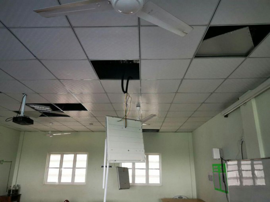ށ. މިލަންދޫ ސްކޫލްގެ ކްލާސް ރޫމްތަކުގެ ސީލިންގުން ބައެއް ވެއްޓިއްޖެ