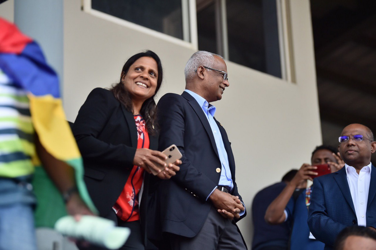 މޮރިޝަސްއަށް ކުރެއްވި ރަސްމީ ދަތުރުފުޅުގައި ރައީސްގެ ދެކަނބަލުން ވަނީ މޮރިޝަސްގެ ޕޯޓް ލުއީގައި މިހާރު ކުރިޔަށްދާ އިންޑިއަން އޯޝަން އައިލެންޑް ގޭމްސް 2019 (އައި.އޯ.އައި.ޖީ) ހުޅުވުމުގެ ރަސްމިއްޔާތުގައި ބައިވެރިވެ ވަޑައިގެން ދިވެހި ޓީމުތައް ވާދަކުރި ބައެއް މެޗްތައް ބައްލަވާލައްވައި ޓީމުތަކަށް ތަރުހީބު ދެއްވާފައެވެ.