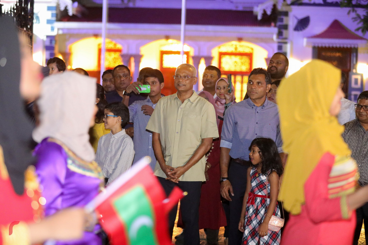 MNDF and local schools performed cultural dance items, musical performances and parades at the National Stadium on Friday where the First Couple as well as Minister Imran participated.