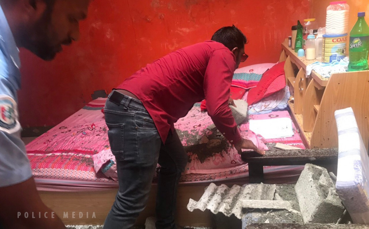 ފުލުހުން ބުނީ އެ ފާރު ވެއްޓިފައިވަނީ ގޭގެ ގޯތިތެރޭގައި ހުރި އެހެން އިމާރާތެއްގެ މައްޗަށް ކަމަށެވެ. އަދި އެ އިމާރާތުގައި ހުރި ސިމެންތި ފުރާޅު ފަޅައިގެންގޮސް، ކޮޓަރީގެ ސީލިންގ އާއެކު ކޮޓަރިތެރެޔަށް ފާރުވެއްޓިފައިވާކަމަށާއި އެ ވަގުތުގައި ދެ މީހަކު ކޮޓަރީގައި ތިބިކަމަށެވެ.