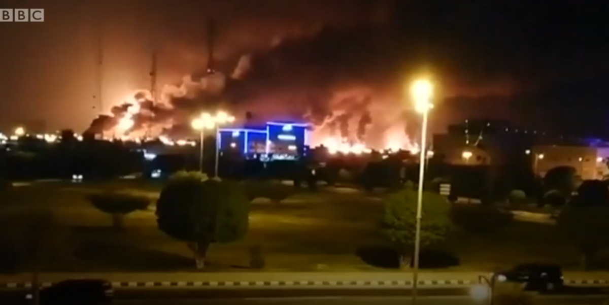Yemen's Houthi rebels have taken responsibility for the attacks on the oil facilities, which have disrupted about half of Saudi Arabia’s oil capacity, or 5% of the daily global oil supply.