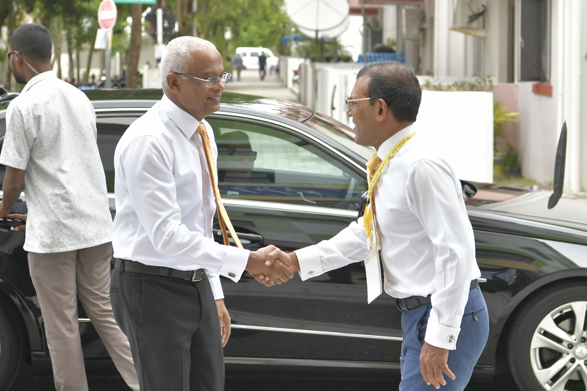 ރައީސުލްޖުމްހޫރިއްޔާ އިބްރާހިމް މުހައްމަދު ސޯލިހާއި ކުރީގެ ރައީސް މުހައްމަދު ނަޝީދާއި ސަލާމް ކުރައްވަނީ