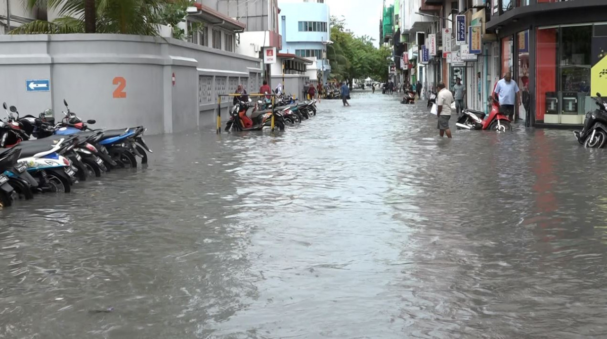 މާލެއަށް ބޯކޮށް ވާރެ ވެހި، މަގުތަކުގައި ފެން ބޮޑުވެގެން އެމްއެންޑީއެފްގެ ފަޔަރ އެންޑް ރެސްކިއުގެ ސިފައިން ފެން ހިއްކުމުގެ މަސައްކަތް ދަނީ ކުރަމުންނެވެ.