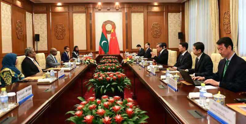 ޗަައިނާގެ ޚާޜިޖީ ވަޒީރާއިއެކު ބޭއްވުނު ބައްދަލުވުމުގައި ރާއްޖެއާއި ޗައިނާއާ ދެމެދު އޮތް ގުޅުމަކީ ދެ ޤައުމުގެ ރައްޔިތުންގެ މެދުގައި އޮތް ގުޅުމެއް ކަމަށާއި ކޮންމެ ސަރުކާރެއް އޮތް ނަމަވެސް ރާއްޖޭގެ ތަރައްޤީއަށްކުރާ މަސައްކަތްތަކަށް ޗައިނާގެ އެހީ ލިބޭނެކަމުގެ ޔަގީންކަން ޗައިނާގެ ޚާރިޖީ ވަޒީރު އަރުއްވާފައިވާ ކަމަށްވެސް މިނިސްޓަރ ވިދާޅުވިއެވެ.
