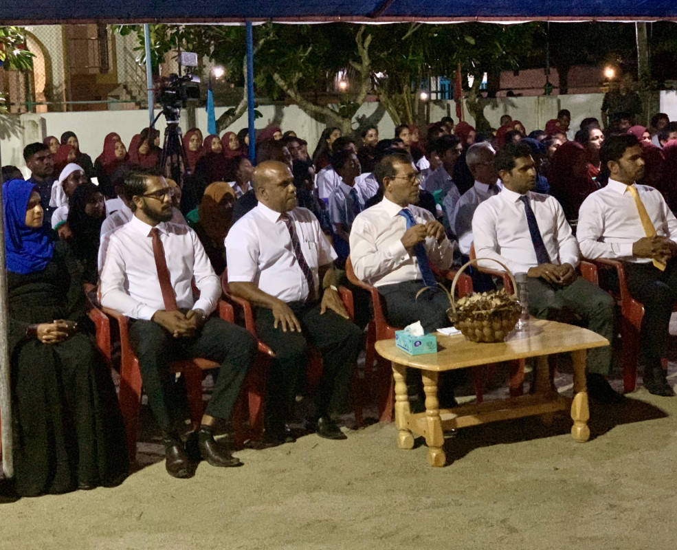ތޮއްޑޫ ސްކޫލުގެ އިނާމު ދިނުމުގެ ޖަލްސާ ޝަރަފުވެރިކޮށްދެއްވާ ރައީސް ނަޝީދު ވިދާޅުވީ ތޮއްޑޫގެ ތަރައްގީއަށް ގިނަ މަސައްކަތްތައް ކުރެވޭއިރު، ޚާއްސަކޮށް ސްކޫލު ތަރައްގީ ކުރުމަށް ކުރިއަށް އޮތް ފަސް އަހަރު ދުވަހުގެ ތެރޭގައި ގިނަގުނަ ޕްރޮގްރާމްތައް ހިންގިގެންދާނެ ކަމަށެވެ. ރައީސް ނަޝީދު ވިދާޅުވީ ތޮއްޑޫ ސްކޫލުގައި އަލަށް އިމާރާތް ކުރެވޭ 12 ކްލާސްރޫމާއެކު އެއްދަންފަޅިއަށް ސްކޫލު ބަދަލުވެގެންދާނެ ކަމަށާއި، 12 ކްލާސްރޫމާއެކު މަލްޓިޕާޕަސް ހޯލެއް އިމާރާތް ކުރެވިގެންދާނެ ކަމަށެވެ. އަދި މިއީ ލިބޭ ވަރަށް ބޮޑު ކުރިއެރުމެއް ކަމަށް ރައީސް ނަޝީދު ވިދާޅުވިއެވެ.