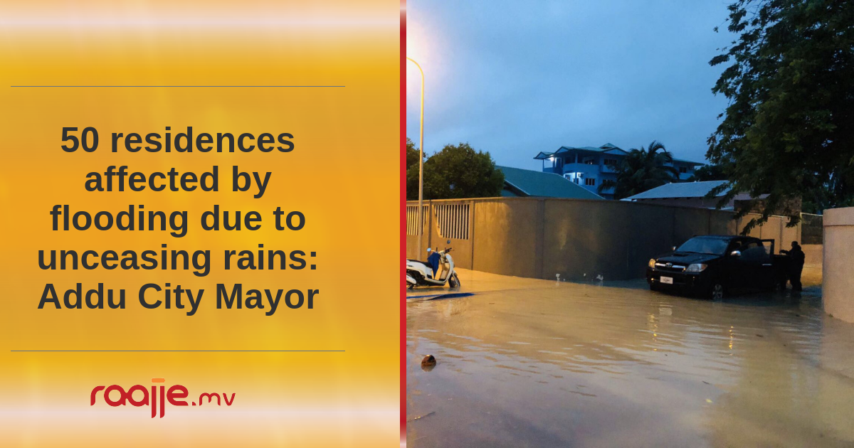 50 houses in southernmost Addu City have been heavily affected by floods caused by the recurrent rain caused by the monsoon season prevailing over the country in the past few days, says Addu City Mayor Abdulla Sodiq.