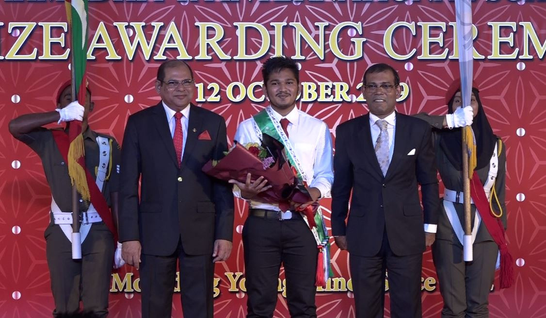 ދަރުބާރުގޭ ރަންނަ ބަނޑޭރިމާލަމުގައި ހޮނިހިރު ދުވަހުގެ ރޭ ބޭއްވި އަހުމަދިއްޔާ ސްކޫލްގެ މިދިޔަ އަހަރުގެ އިނާމު ދިނުމުގެ ޖަލްސާގައި ރަސަލް އަދި ސަނީ އަށް އެވޯޑްތައް ހަވާލުކޮށްދެއްވީ ޖަލްސާގެ ޝަރަފުވެރި މެހެމާނު ކުރީގެ ރައީސް އަދި މިހާރުގެ ރައްޔިތުންގެ މަޖިލީހުގެ ރައީސް އަލްފާޟިލް މުހައްމަދު ނަޝީދުއެވެ.