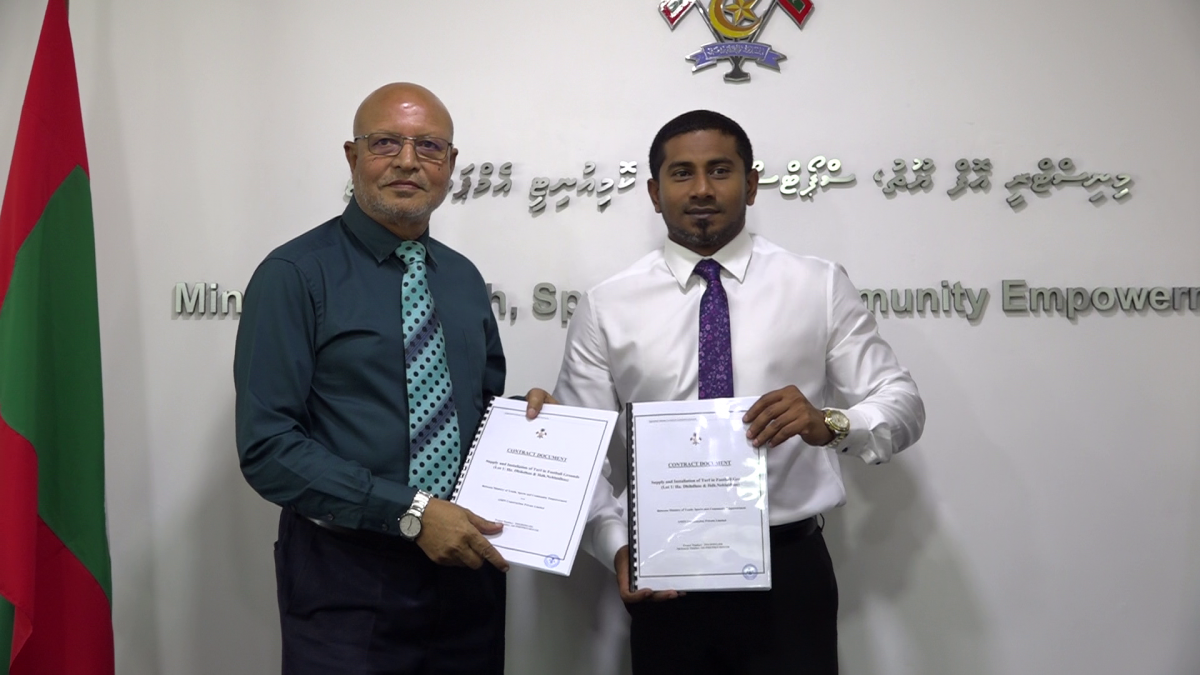 މި ދަނޑުތަކުގައި ޓާރފް އެޅުމުގެ މަސައްކަތް ޙަވާލު ކުރީ އަމީން ކޮންސްޓްރަކްޝަން ކުންފުންޏާއެވެ. މަސައްކަތުގެ އެއްބަސްވުމުގައި ސޮއި ކުރުމަށް ބުދަ ދުވަހު މިނިސްޓަރީ އޮފް ޔޫތް އެންޑް ސްޕޯޓްސްގައި ބޭއްވި ރަސްމިއްޔާތުގައި މިނިސްޓްރީގެ ފަރާތުން ސޮއި ކުރެއްވީ މިނިސްޓަރ އަޙްމަދު މަޙްލޫފެވެ. އަމީން ކޮންސްޓްރަކްޝަންގެ ފަރާތުން ސޮއިކުރެއްވީ އެކުންފުނީގެ މެނޭޖިންގް ޑިރެކްޓަރު އަބްދުﷲ މުހައްމަދު އެވެ.