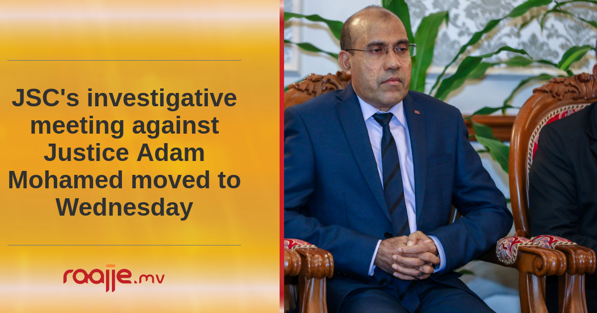 Judicial Service Commission (JSC)’s investigate meeting against Supreme Court Justice Adam Mohamed Abdulla has been rescheduled to Wednesday.