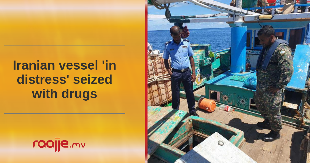 A vessel with the Iranian flag was captured while attempting to smuggle drugs into the country last month. The boat was intercepted approximately 172 miles northwest of Thuraakunu, Haa Alifu Atoll, along with local fishing vessel 'Hedhey Kuri 7', with 70kg of heroin.