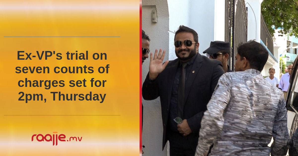 The trail of all seven charges against Former Vice President Ahmed Adeeb Abdul Ghafoor has been scheduled at the Criminal Court for Thursday.
