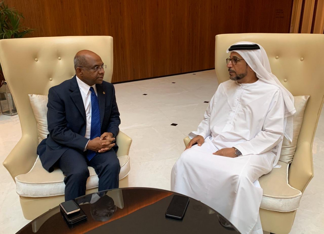 މިނިސްޓަރު ޝާހިދު، އަބޫދާބީ ފަންޑް ފޯ ޑިވެލޮޕްމެންޓްގެ ޑިރެކްޓަރ ޖެނަރަލް މުހައްމަދު އަލް ސުވައިދީއާ ބައްދަލުކުރައްވަނީ