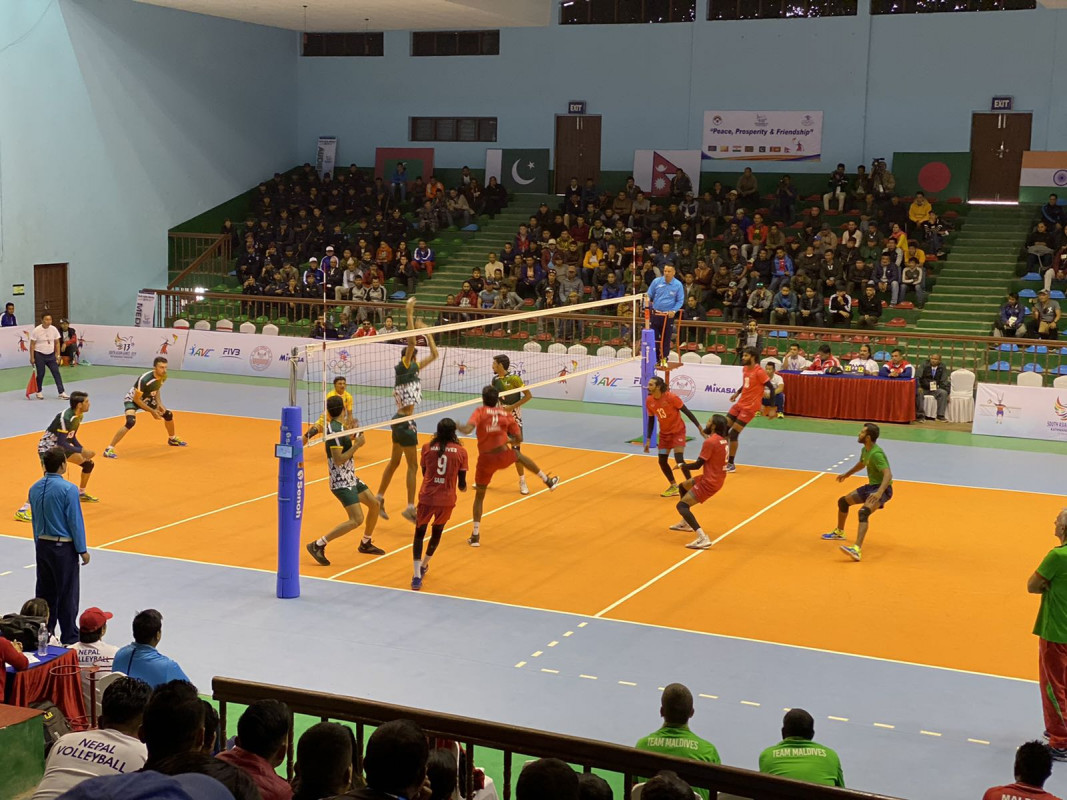 ނޭޕާލުގައި މިހާރު ކުރިޔަށްދާ 13 ވަނަ ސައުތު އޭޝިއަން ގޭމްސްގައި ރާއްޖޭގެ ފިރިހެން ވޮލީ ޓީމު ކުޅުނު ފުރަތަމަ މެޗުން ޕާކިސްތާން އަތުން ބަލިވެއްޖެއެވެ.