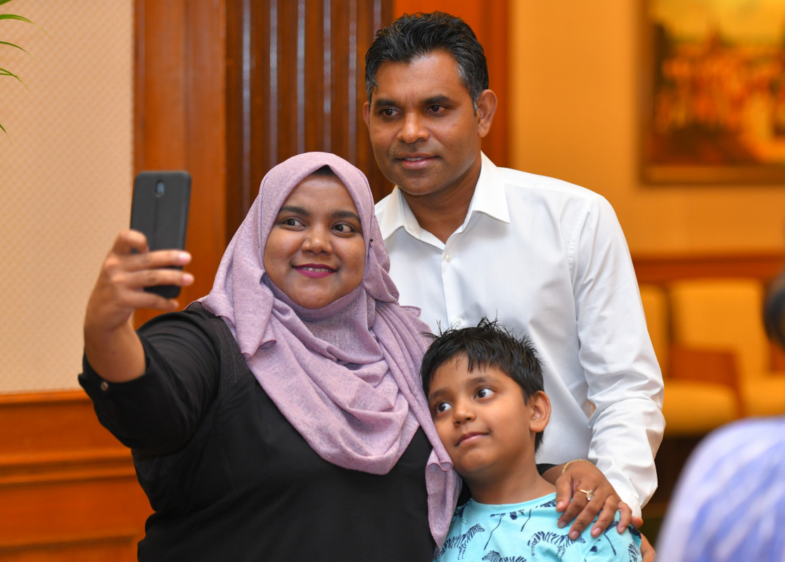 ބެންގަލޫރުގައި ދިރިއުޅޭ ދިވެހީންނާއެކު ބޭއްވެވި ބައްދަލުކުރެއްވުމުގައި ނައިބުރައީސާއެކު މީހަކު ސެލްފީއެއް ނަގަނީ