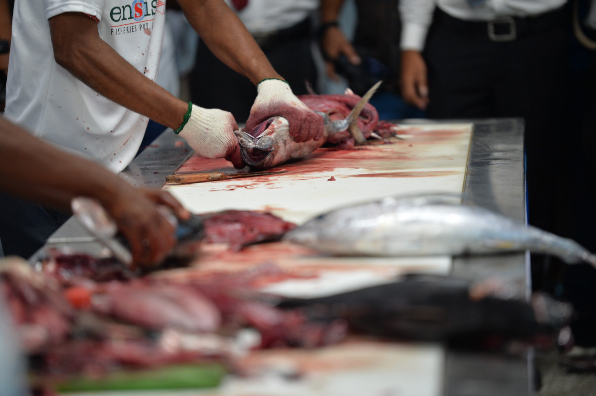 އެންސިސް އިން ހުޅުމާލޭގައި ހުޅުވި މަސް ކަރުހާނާގައި ބަޔަކު މަސް ކަނޑަނީ