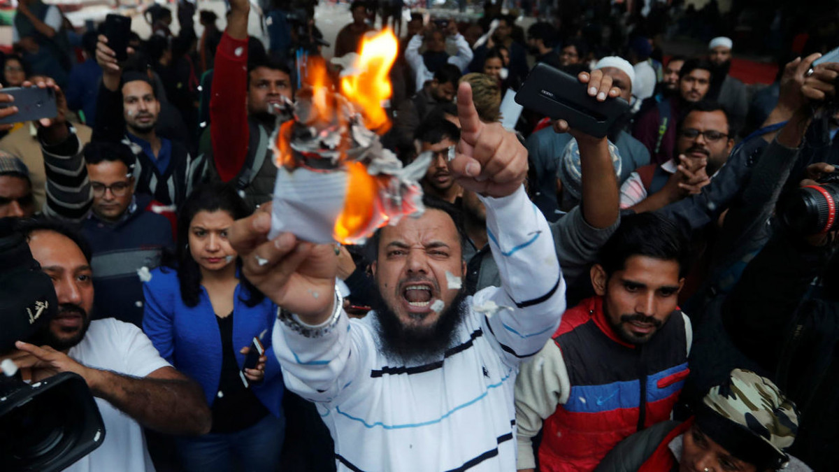 ނިއު ދިއްލީގައި ކުރަމުންދާ މުޒާހަރާތަކުގައި އެ ސިޓީގެ ޕްރިސްޓީޖަސް ޖާމިއާ މިލިއާ އިސްލާމިއާ ޔުނިވަރސިޓީގެ ދަރިވަރުންގެ ތެރެއިން 2000 އަށް ވުރެ ގިނަ ދަރިވަރުން ދަނީ ރަށްވެހިކަމުގެ ޤާނޫނާ ދެކޮޅަށް އަޑު އުފުލަމުންނެވެ. މި މުޒާހަރާގައި އެތައް ސަތޭކަ ބައިވެރިންނަށް އަނިޔާވެފައިވާ އިރު، ގިނަ ޢަދަދެއްގެ މީހުން ވަނީ ހައްޔަރުވެސް ކޮށްފައެވެ. މި މުޒާހަރާތަކުގައި ޔުނިވަރސިޓީގެ ކޭމްޕަހަށް ވެސް ބޮޑެތި ގެއްލުންތައް ލިބިފައިވާ ކަމަށް އެ ޔުނވަރސިޓީގެ ވައިސް ޗާންސެލަރު ނަޖުމާ އަޚުތަރު ވަނީ ވިދާޅުވެފައެވެ.