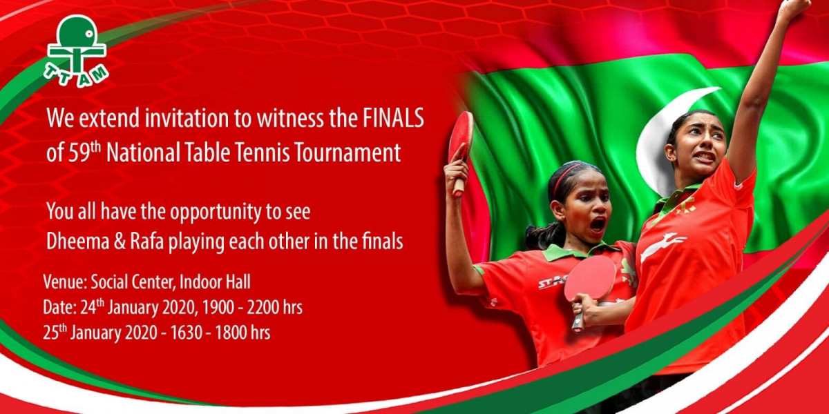 ގައުމީ 59 ވަނަ ޓޭބަލް ޓެނިސް މުބާރާތުގެ ފައިނަލުގައި ފާތިމަތު ދީމާ އަލީ އަދި އައިމިނަތު ރަފާ ނާޒިމްގެ މެޗު މާދަމާ އޮންނާނެއެވެ.